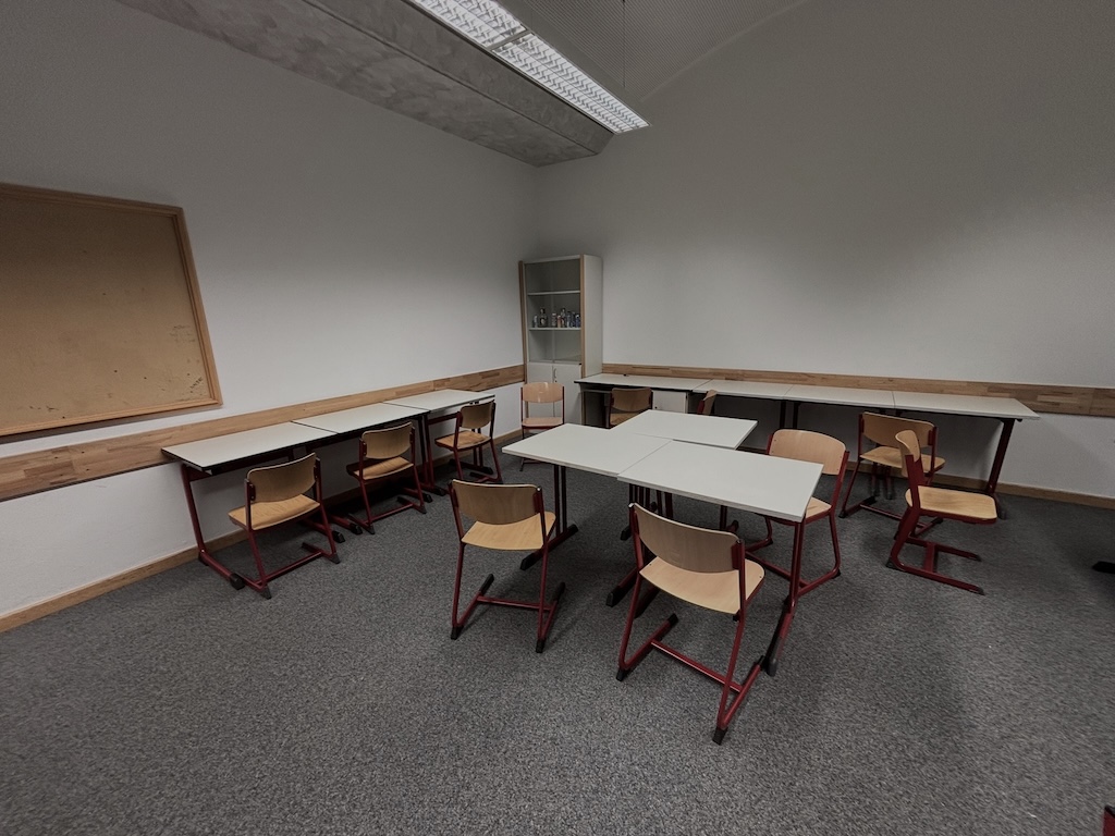 Vermutlich wird Ihre Wahl auf die gemütliche Variante rechts (aktuelles Q13 Zimmer) fallen. Für die aktuelle Q12 sieht dies allerdings anders aus, wie sie im Bild links erkennen können. Ein entsprechender Raum steht zwar zur Verfügung, jedoch fehlt es aktuell an ansprechenden Sitzgelegenheiten, die dem Raum nicht nur eine funktionale sondern auch gemütliche Note verleihen. Gelder des Sachaufwandsträgers würden dafür erst, wenn überhaupt, gegen Ende des Schuljahres 25/26 zur Verfügung stehen. Da die Möbel strenge Anforderung z.B. bzgl. Brandschutz etc. erfüllen müssen, ist der Förderverein bereits letztes Jahr für das Zimmer der aktuellen Q13 mit knapp 10.000 Euro für eine schnelle Lösung eingesprungen, leider können wir das nicht jedes Jahr aus Vereinsmitteln leisten.