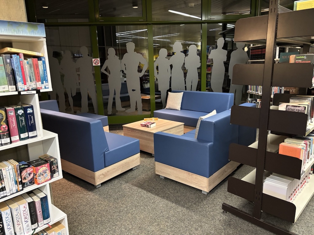 Der größte Wunsch unserer 2024 gestarteten Traumprojekte ging mit 11.500 Euro für Frau Mair - Leiterin der Lernmittelbücherei - in Erfüllung, die mit Unterstützung ihres Bücherei-Teams auch den Bibliotheksbetrieb verwaltet. Mit dieser beachtlichen Summe wurde die neue Leseecke mit Regalen und Sitzmöbeln finanziert, die auch perfekt zur Stillarbeit genutzt werden kann.